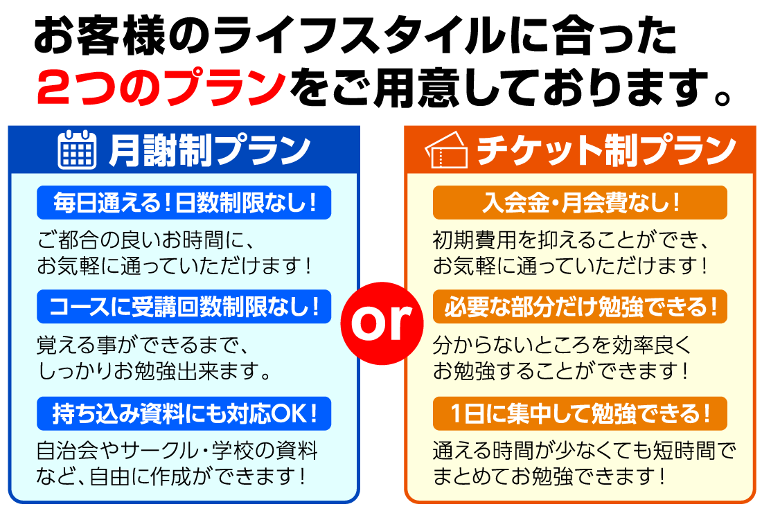 通える日数が少なく、短期間で1日に集中してお勉強したい方には、お勧めのプランです。